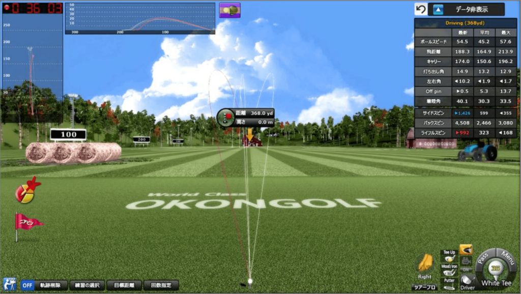 最大420ydまで計測可、実際の弾道同様フック、スライス、ドロー、 フェード、バックスピンなど、リアルに再現します。